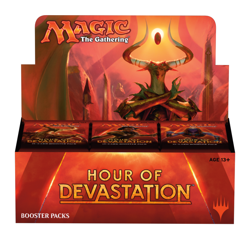 Players receive a full booster box of Hour of Devastation to build a deck with, and then plays in a swiss style tournament to win a booster box.